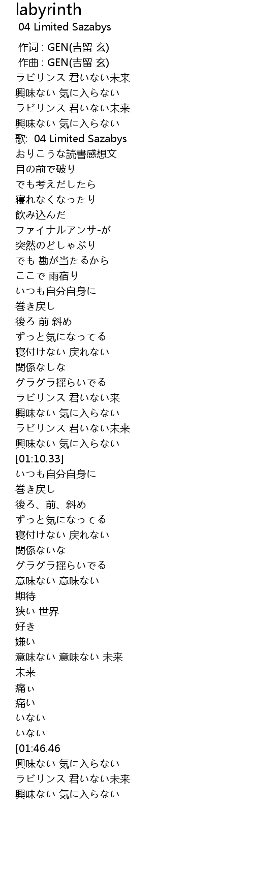作词 : GEN(吉留 玄) |