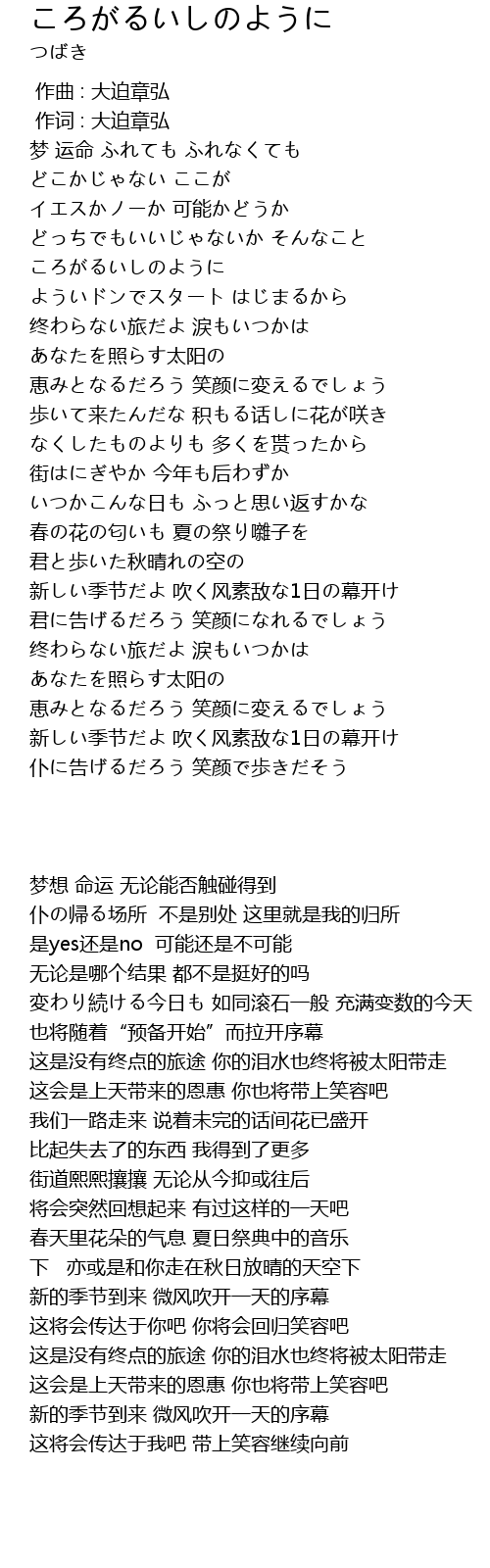 | 歌曲 | ころがるいしのように |