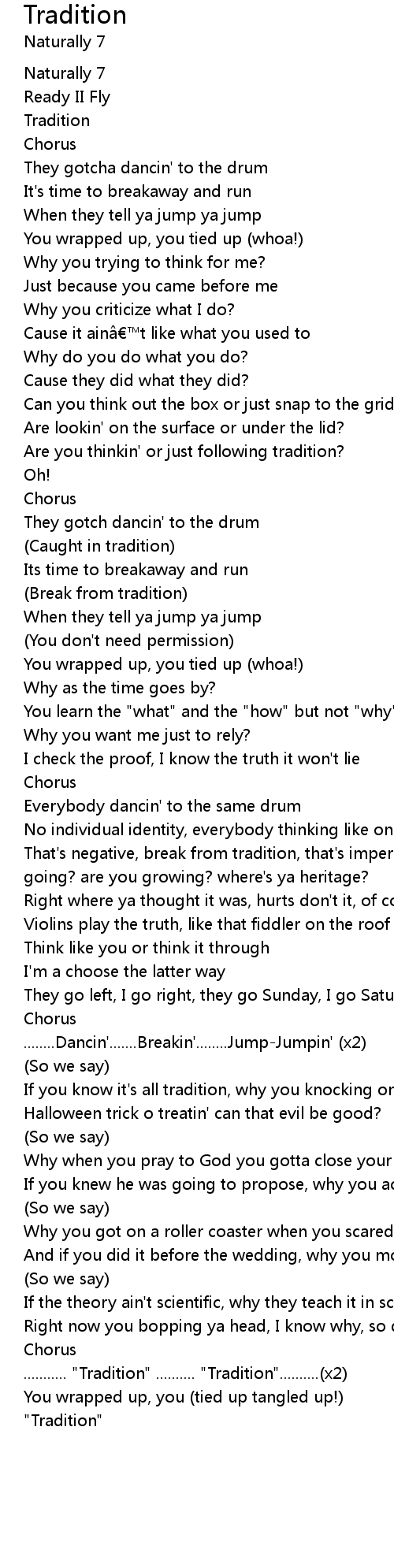 | ........... "Tradition" .......... "Tradition"..........(x2) | |