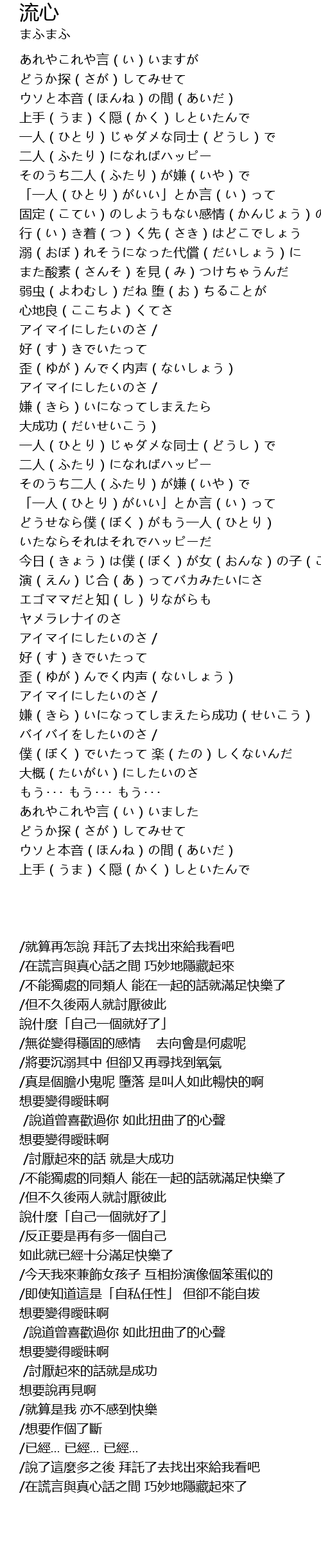 | [02:53.680] | ウソと本音(ほんね)の間(あいだ) 上手(うま)く隠(かく)しといたんで |