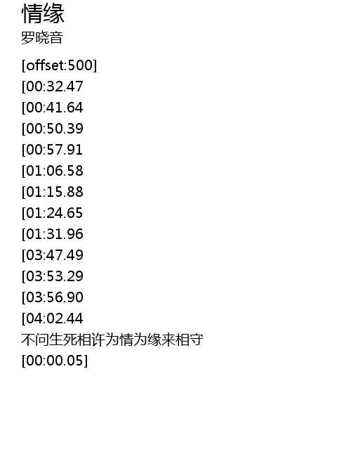| [04:25.34] | 不问生死相许为情为缘来相守 |