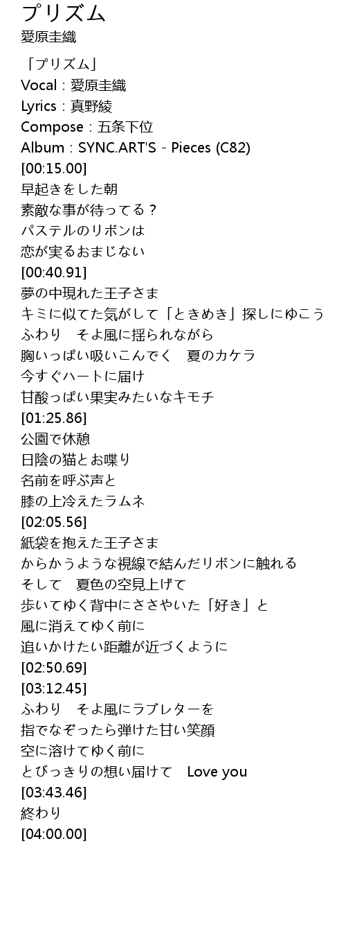 | [00:12.00] | Album:SYNC.ART'S - Pieces (C82) |