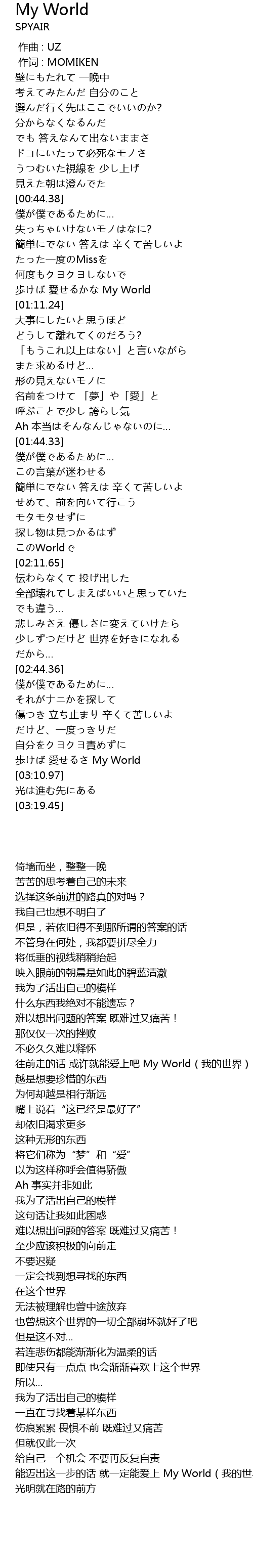 | [03:04.38] | bù ài My World |