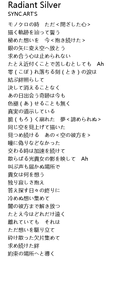 | [00:28.853] | 銀の矢に変え空へ放とう |