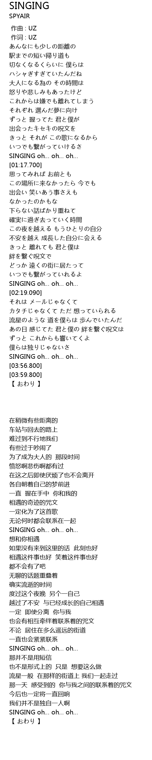 | [00:01.00] | 作词 : UZ |