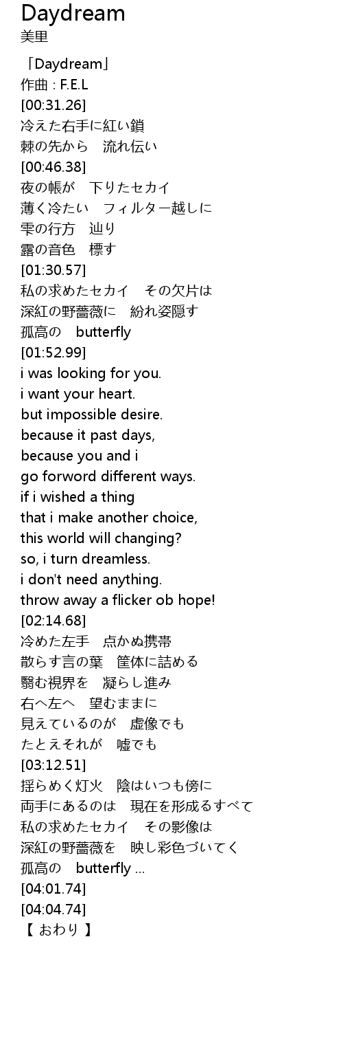 | [01:33.12] | 私の求めたセカイ その欠片は |