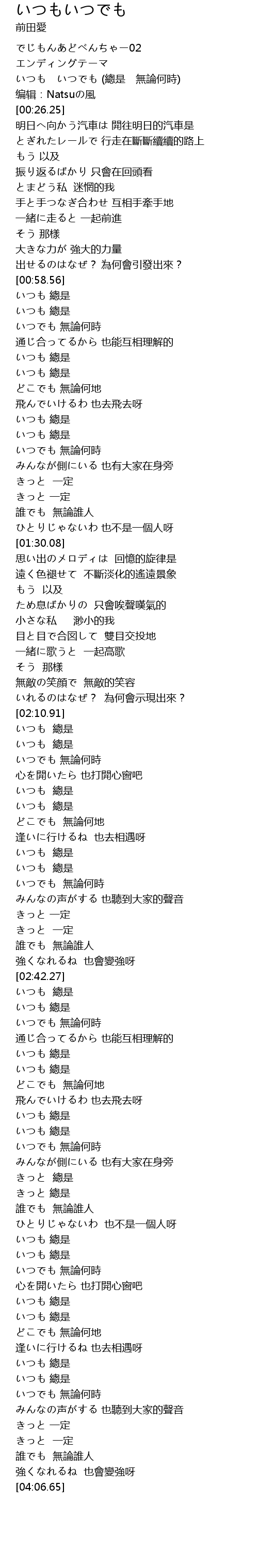 | [02:22.72] | どこでも 無論何地 |