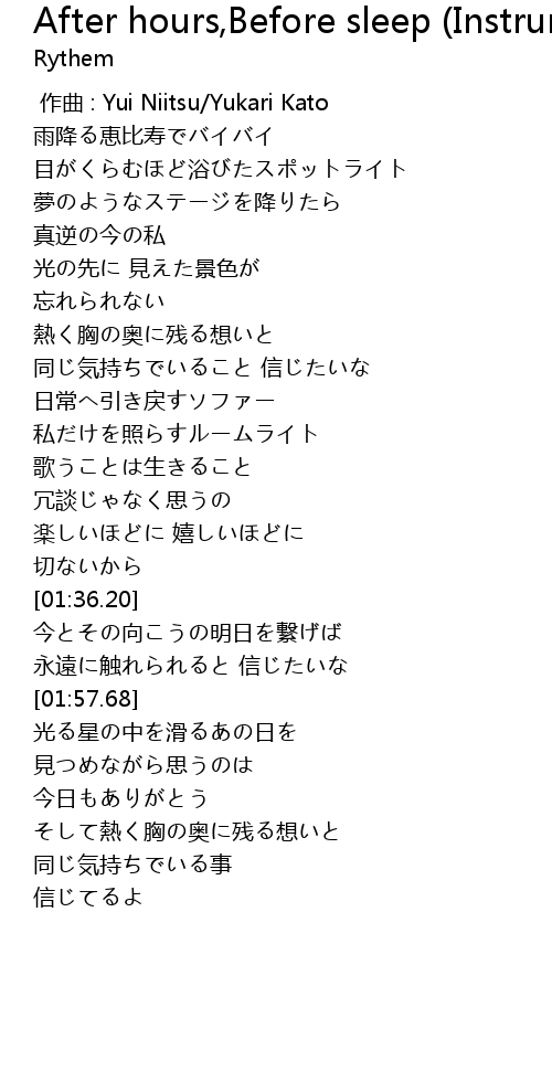 | [01:12.43] | 私だけを照らすルームライト |