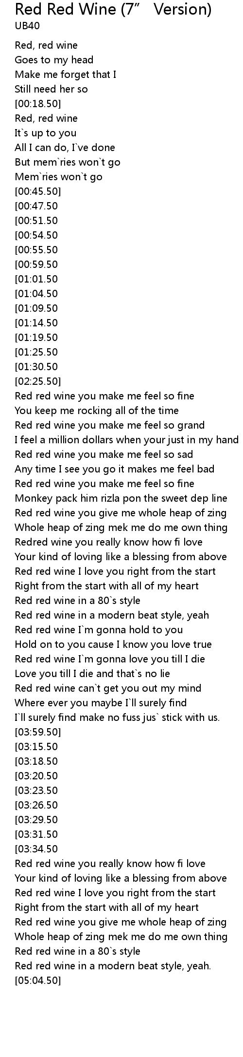 Red red wine you really know how fi love |