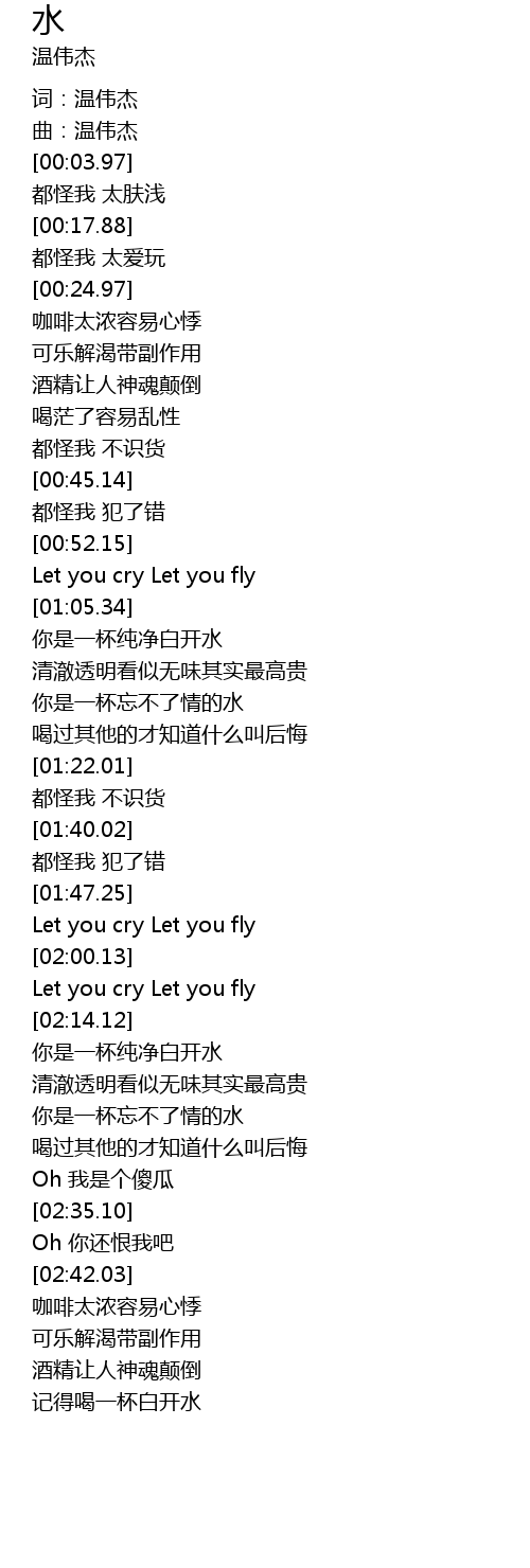 | [02:16.69] | 你是一杯纯净白开水 |