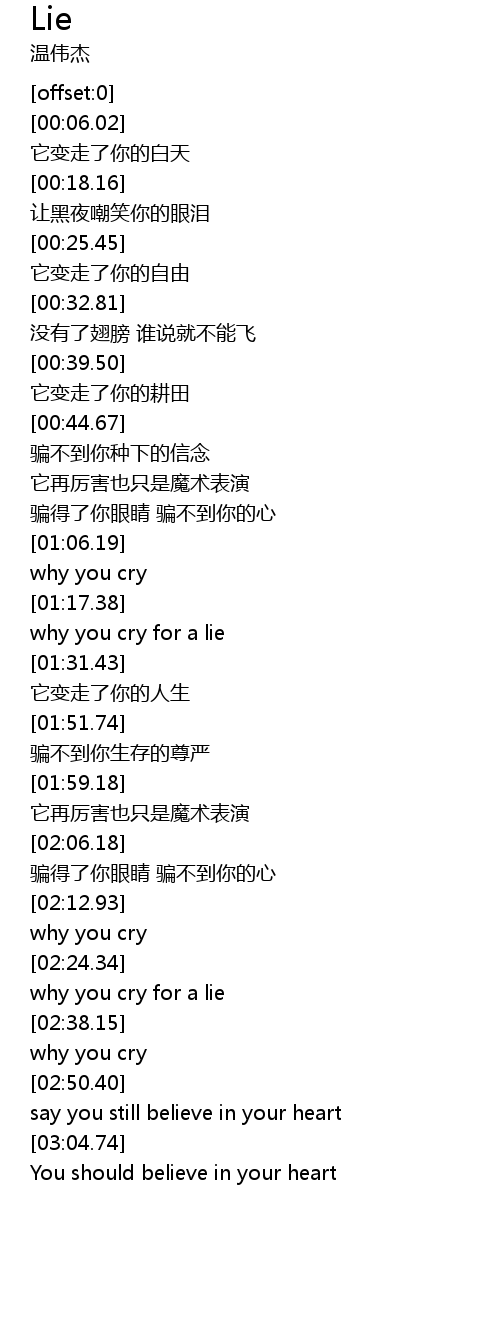 | [02:06.84] | 骗得了你眼睛 骗不到你的心 |