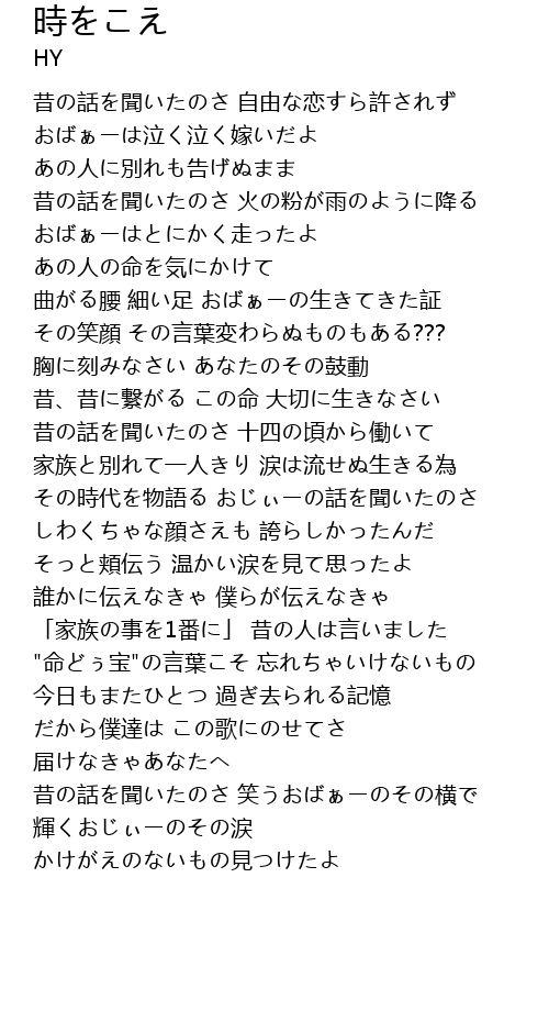 | [01:34.54] | おばぁーはとにかく走ったよ あの人の命を気にかけて |
