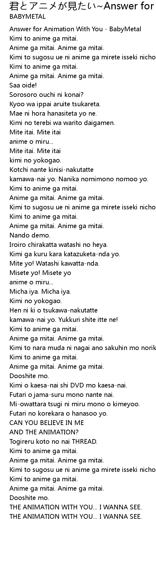 Answer for Animation With You - BabyMetal |