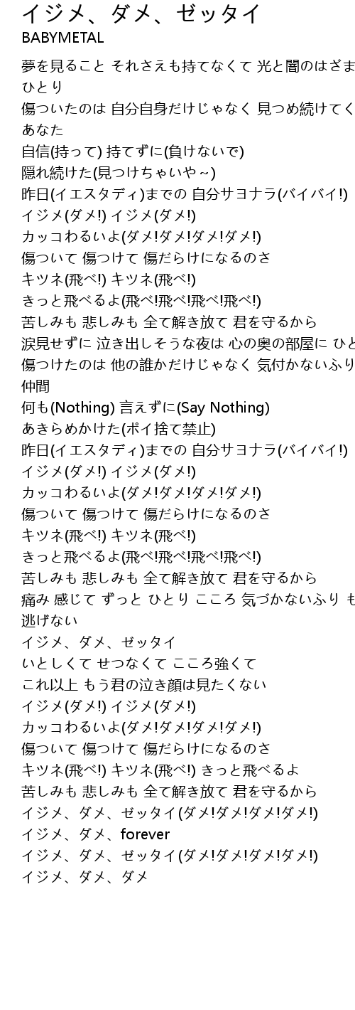 | イジメ(ダメ!) イジメ(ダメ!) カッコわるいよ(ダメ!ダメ!ダメ!ダメ!) | |