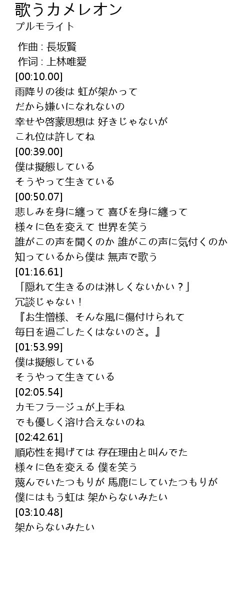 | [01:54.18] | 僕は擬態している |