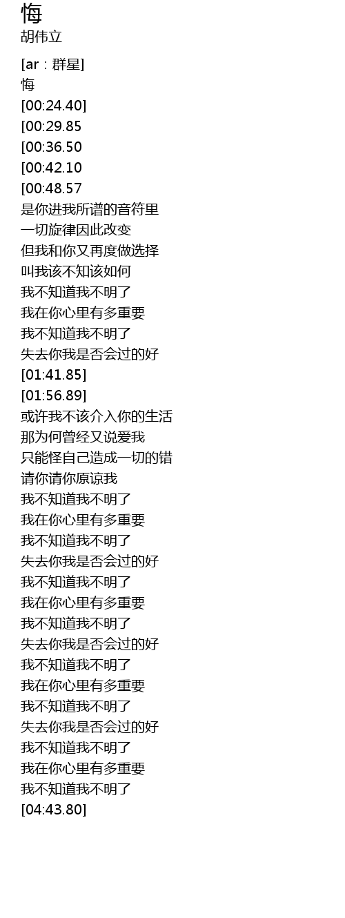 | [04:24.59] | 我不知道我不明了 |