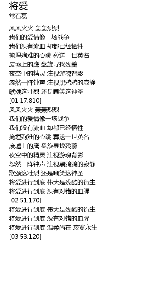 | [01:55.900] | 我们的爱情像一场战争 |