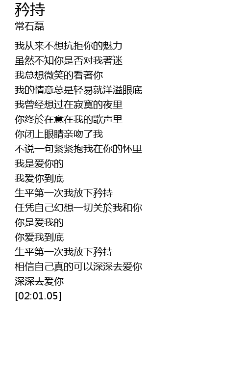 | [01:38.41] | 生平第一次我放下矜持 |