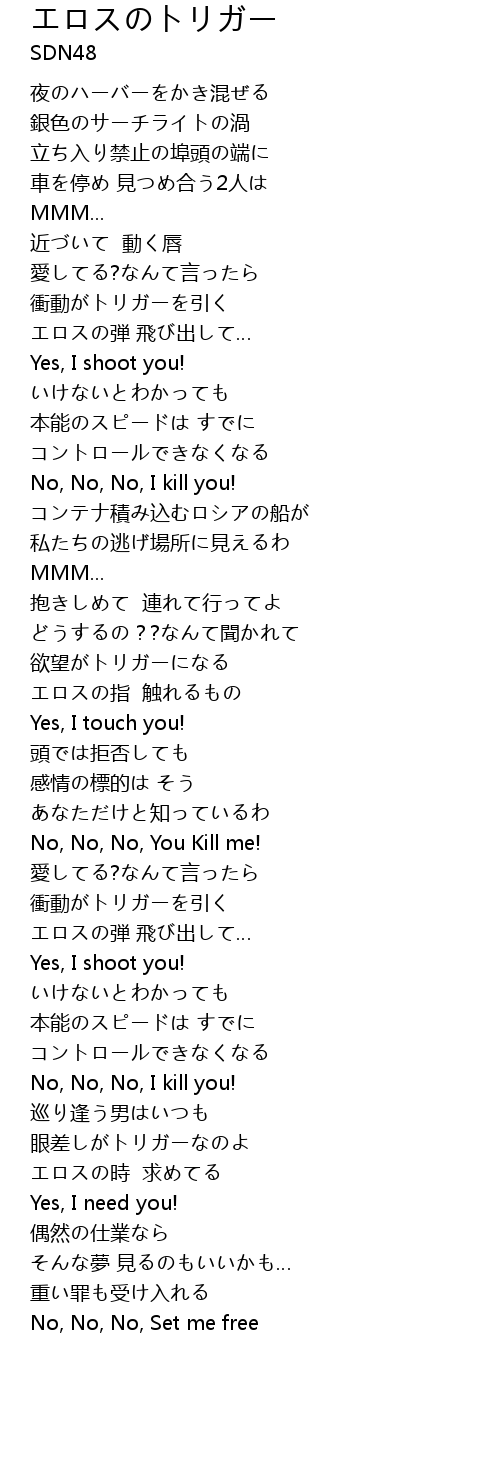 | [03:50.58] | 眼差しがトリガーなのよ |