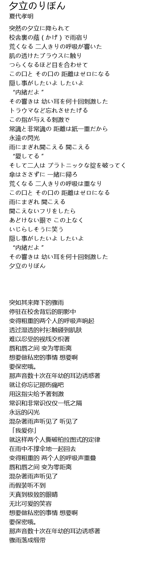 | [02:37.92] | この口と その口の 距離はゼロになる |