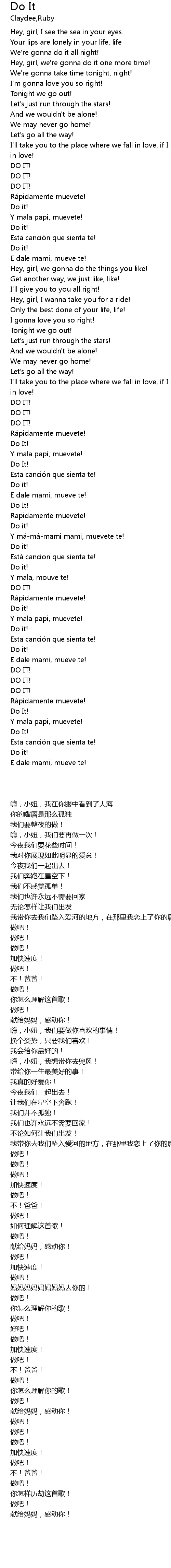 | [01:19.07] | Hey, girl, we gonna do the things you like! |