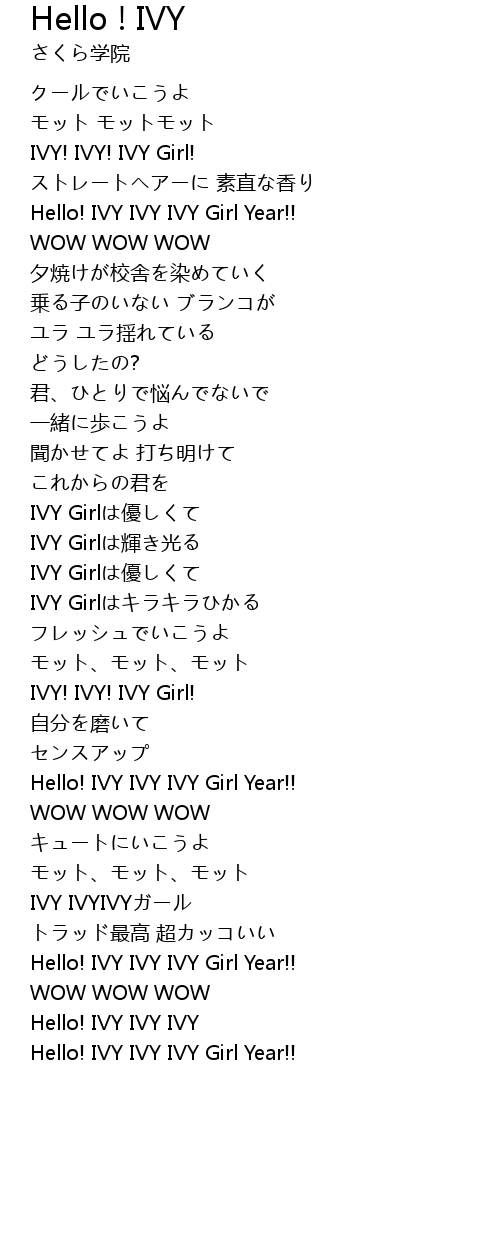 | 歌曲 | Hello ! IVY |
