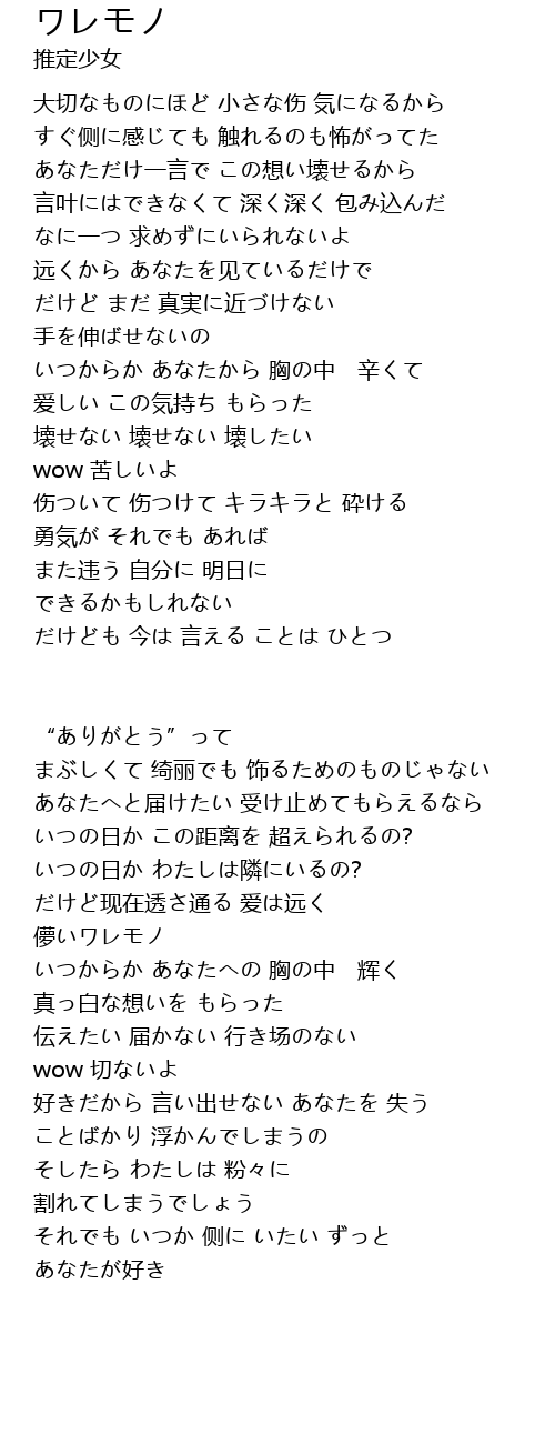 | 歌曲 | ワレモノ |