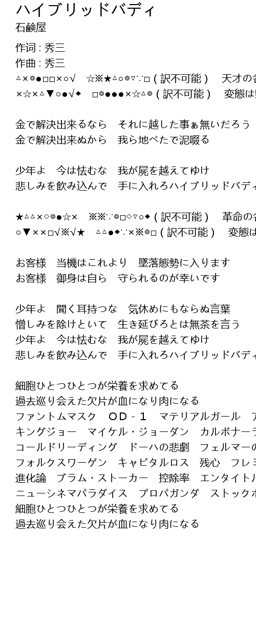 | △×◎●□□×○√ ☆※★△○◎▽∵□(訳不可能) 天才の名の下に | |