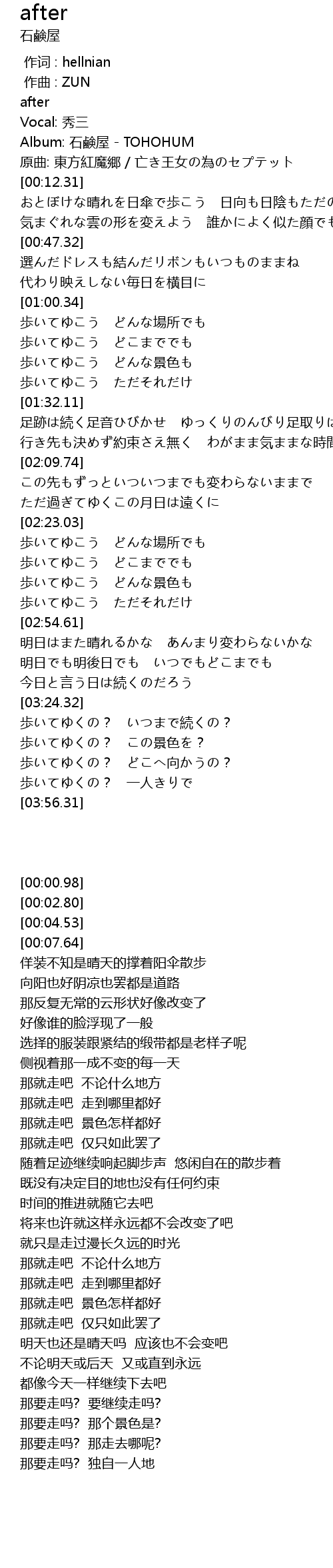 | [00:04.53] | Album: shí jiǎn wū TOHOHUM |