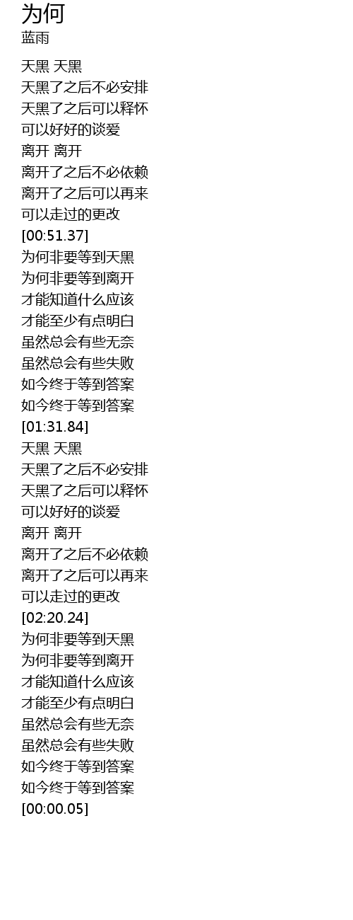| [00:58.31] | 为何非要等到离开 |