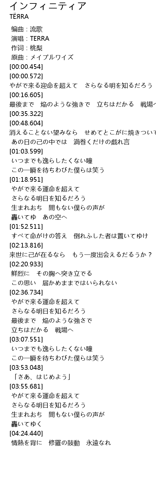 | [04:25.255] | 情熱を背に 修羅の鼓動 永遠なれ |