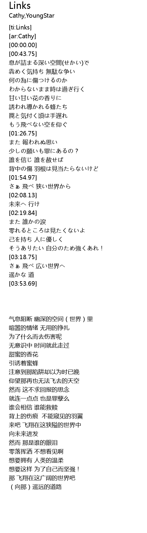 | [03:32.42] | さぁ 飛べ 広い世界へ |