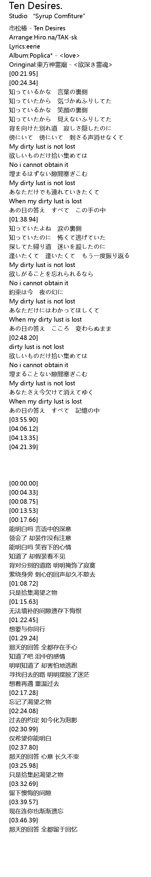 | [03:46.39] | When my dirty lust is lost |