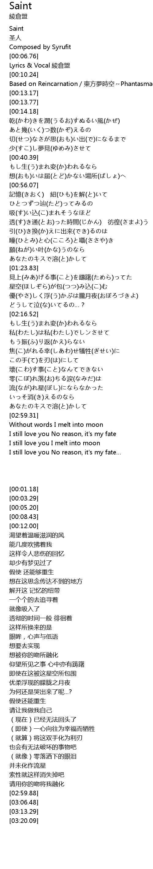 | [00:08.43] | Lyrics & Vocal 綾倉盟 |