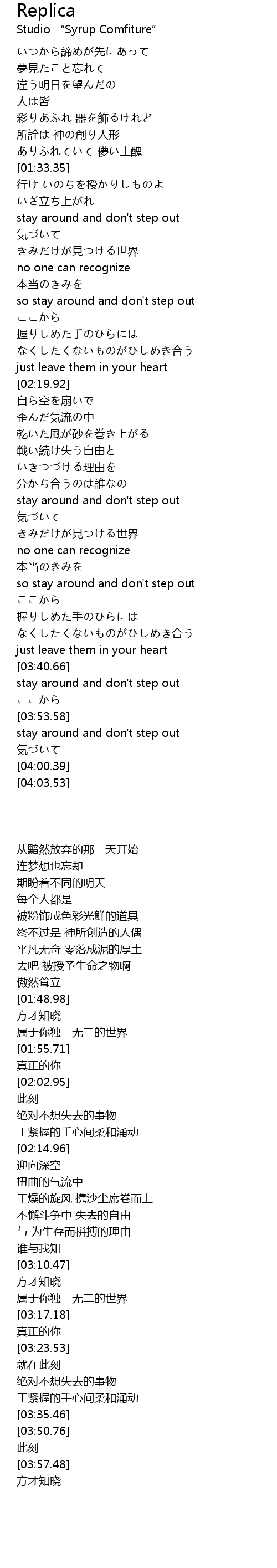 | [01:15.86] | 终不过是 神所创造的人偶 |