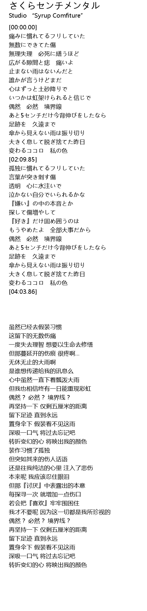 | [01:06.15] | 広がる隙間と痣 痛いよ |