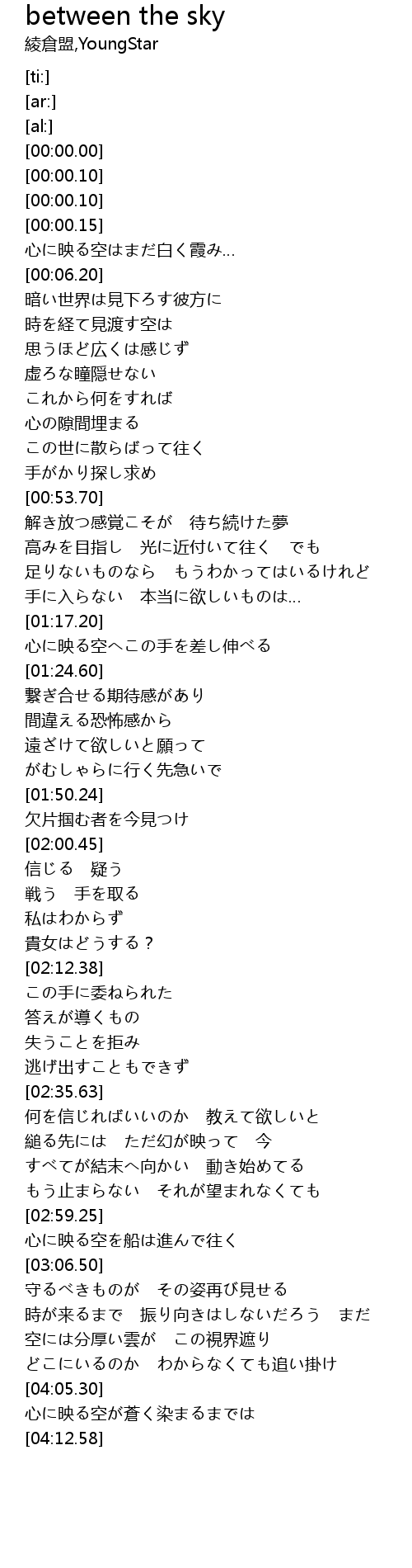 | [04:06.40] | 心に映る空が蒼く染まるまでは |