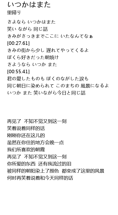| [00:41.63] | ぼくら好きだった朝焼け |