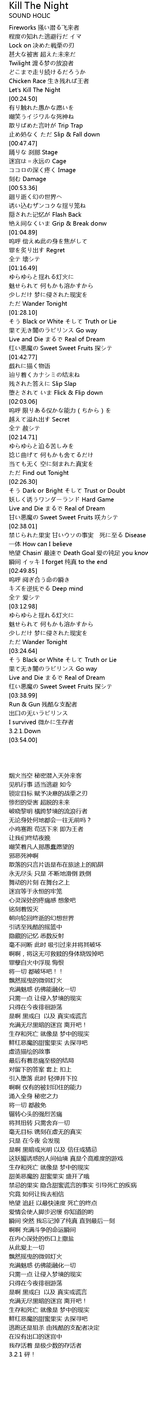 | [00:23.42] | Let' s Kill The Night |