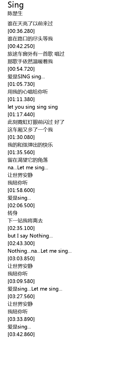 | [03:11.600] | ai shi sing... Let me sing... |