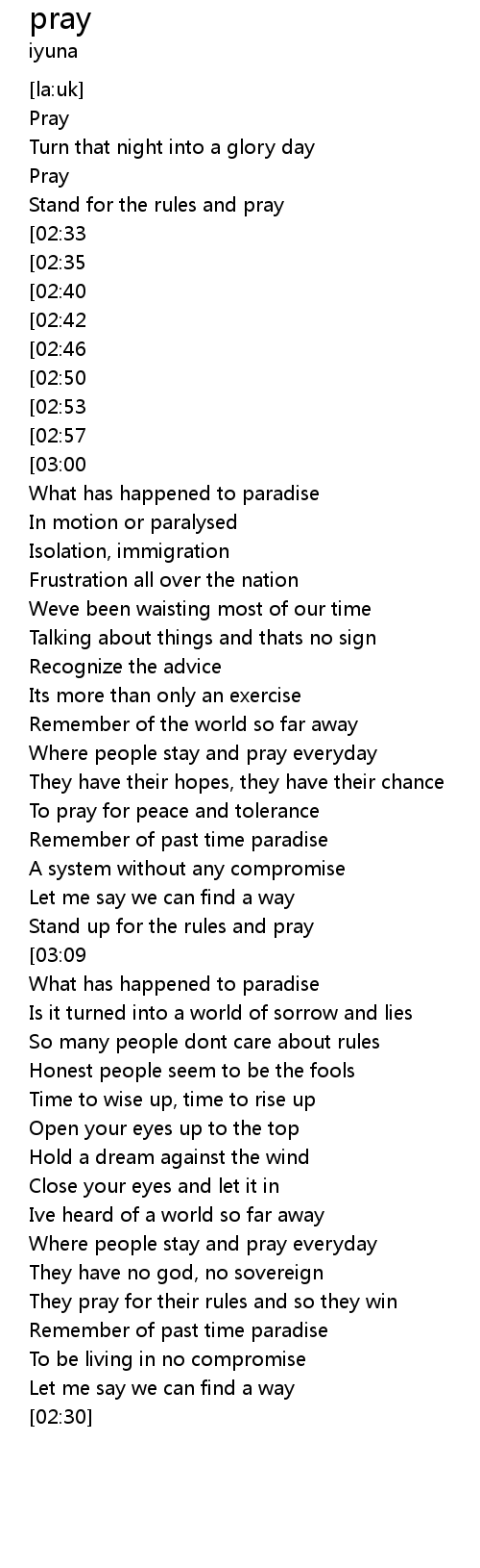 | [03:44][03:09][03:02][02:00][01:53] | Pray |