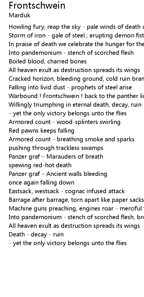 | Machine guns preaching, engines roar - merciful faith no more | |