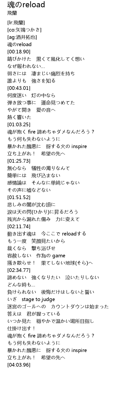 | [02:12.42] | 動き出す魂は 今ここで reloadする |