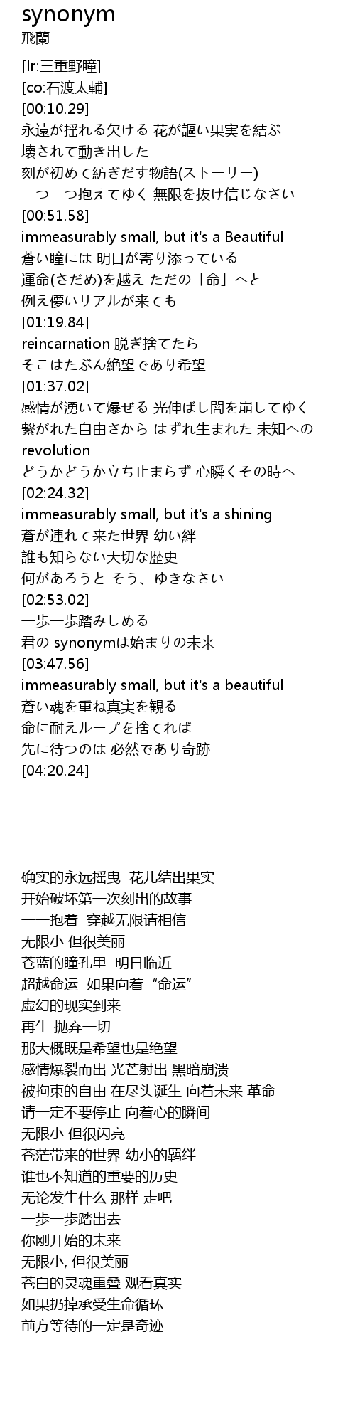| [03:36.88] | 君の synonymは始まりの未来 |