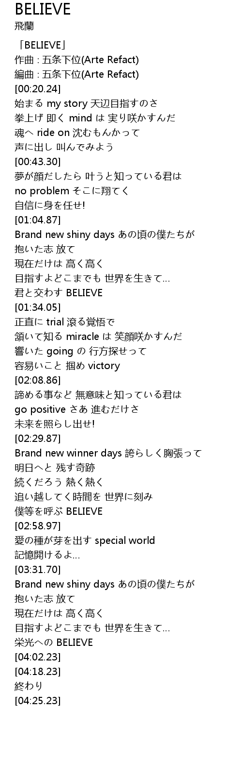 | [00:00.24] | 「BELIEVE」 |