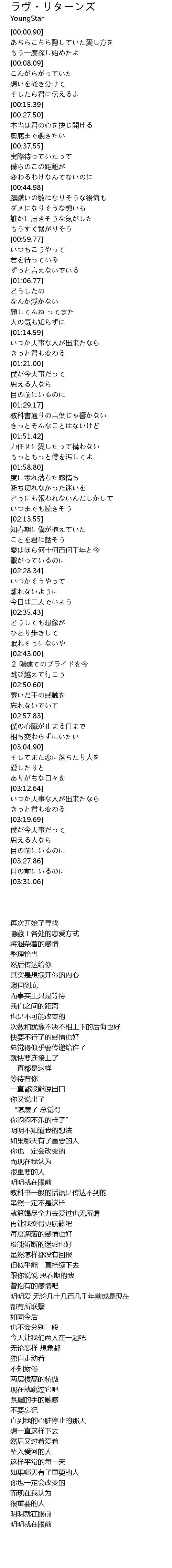 | [02:32.31] | 今天让我们两人在一起吧 |