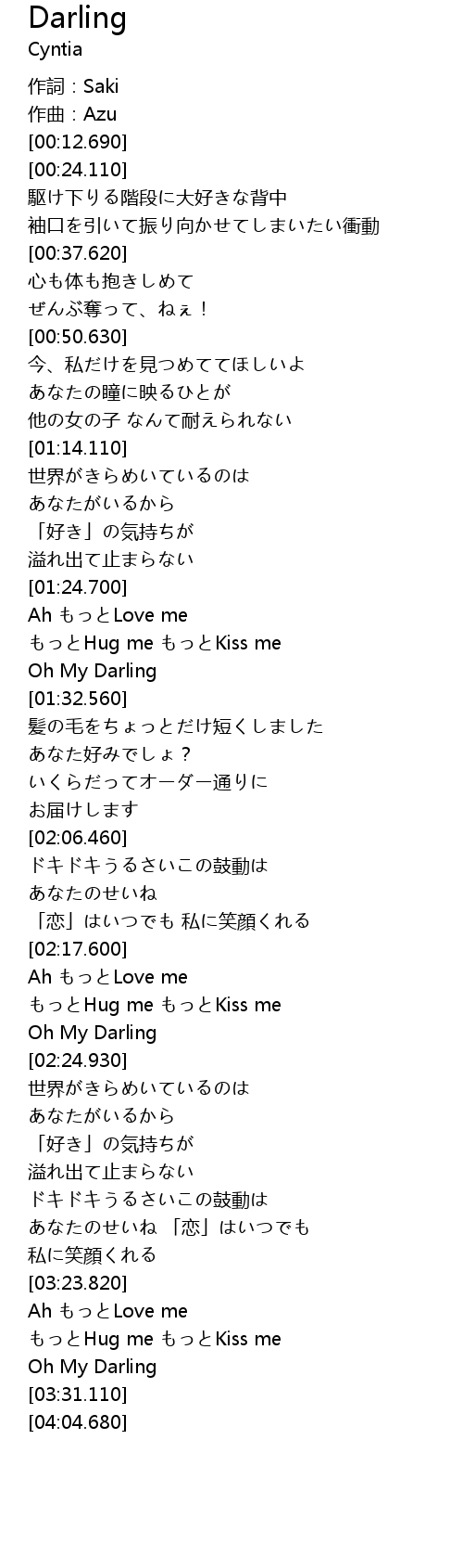| [03:26.000] | もっとHug me もっとKiss me |