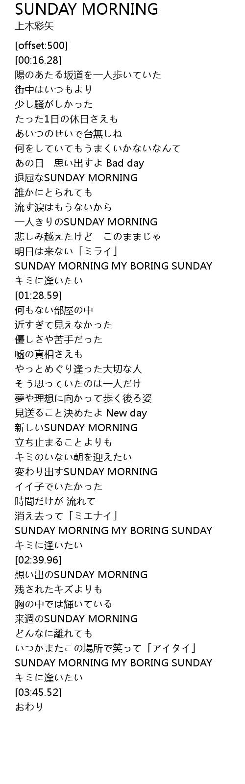 | [03:31.74] | SUNDAY MORNING MY BORING SUNDAY |