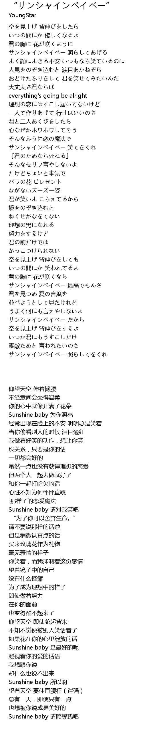 | [03:21.55] | Sunshine baby 请照耀我吧 |