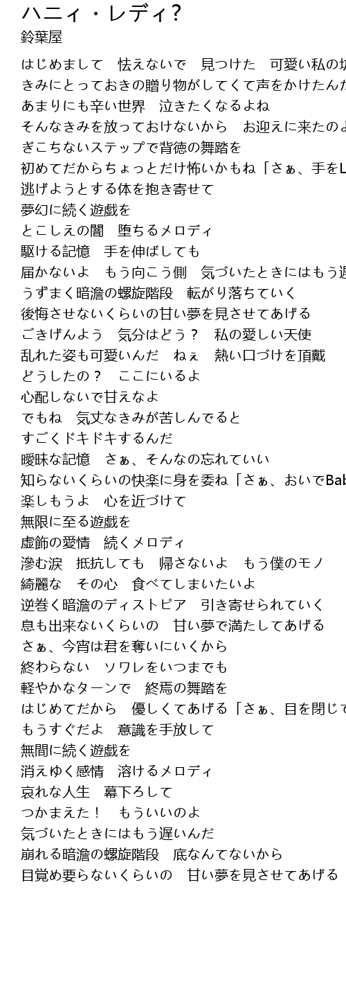 | [01:26.84] | とこしえの闇 堕ちるメロディ |
